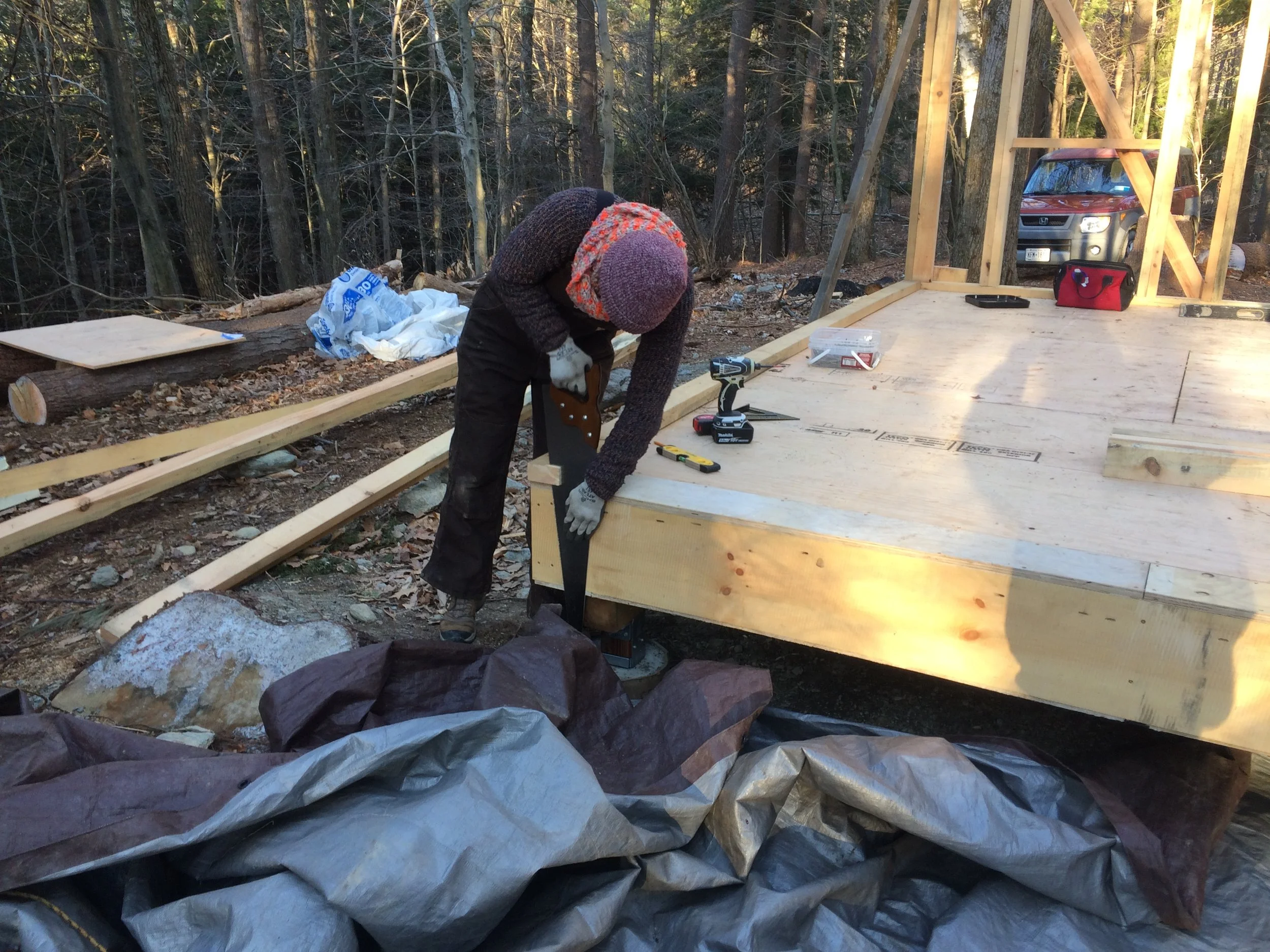 Short term workers will be primarily focused on our timber frame/post and beam pavilion. This project utilizes all bulk material from the surrounding forest and milled on our horizontal bandsaw mill. There is no plywood or OSB in the building, rather we are making tongue and groove and shiplap sheathing boards. For a paid work opportunity you must be comfortable around power tools, but various levels of experience can be utilized, as we often work in pairs with a more senior person and a less experienced person.